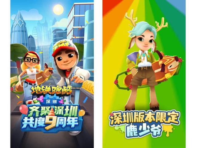 在《地鐵跑酷》深圳版本中,運(yùn)營團(tuán)隊(duì)提取了極具深圳特色的文化元素和地標(biāo)建筑,將其融入到游戲的關(guān)卡設(shè)計(jì)中,以深圳特色的游戲道具和深圳版音樂,讓人耳目一新。在人物角色上,深圳版本推出了特有角色“鹿少爺”和“超級青青”。其設(shè)計(jì)理念來源于深圳最東岸的鹿嘴山莊,山崖像鹿嘴,是深圳第一縷陽光升起的地方,帶有祥瑞希望之意,以少爺形象出現(xiàn),象征深圳是一座具有廣東特色的年輕城市。